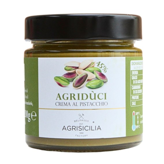 - Odkryj wyjątkowy smak prawdziwego sycylijskiego kremu pistacjowego AGRISICILIA! Wykonany z najwyższej jakości pistacji z regionu Sycylii, zawiera aż 45% pistacji, co gwarantuje intensywny, naturalny smak orzechów. Ten pyszny krem doskonale nadaje się jako dodatek do deserów, pieczywa, naleśników, a także jako składnik ciast i ciasteczek. Produkt nie zawiera sztucznych dodatków, dzięki czemu cieszysz się pełnią smaku i zdrowia. Wybierz AGRISICILIA i zanurz się w autentycznej włoskiej tradycji!