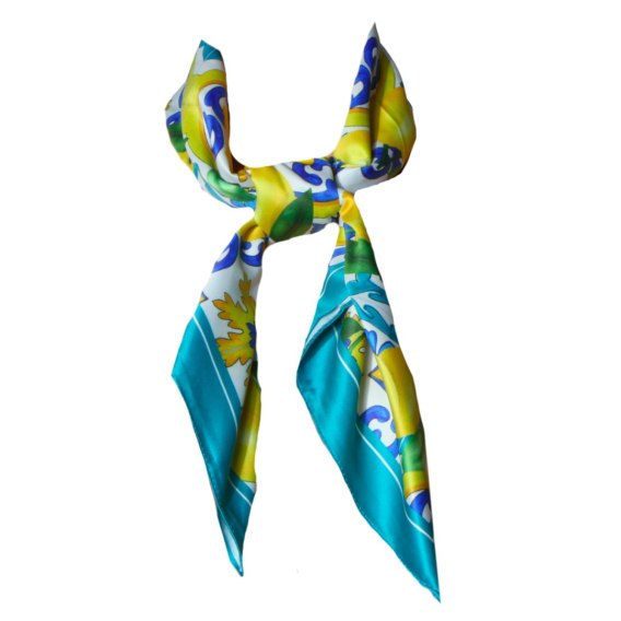 APASZKA CHUSTA DAMSKA NA GŁOWĘ POD SZYJĘ Satynowa CYTRYNY Wzór 10 Włochy