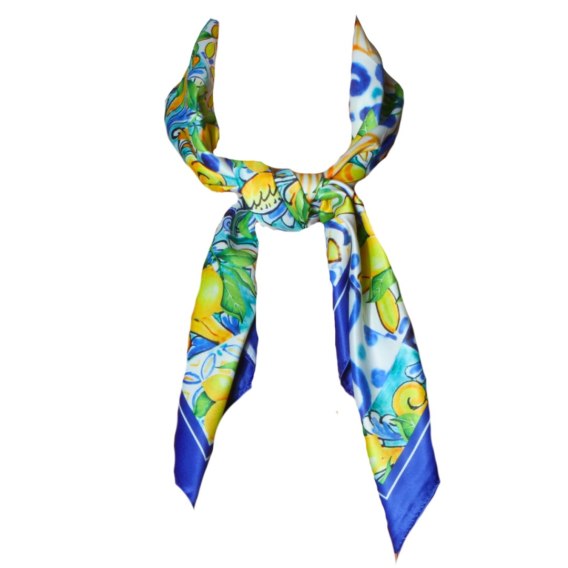 APASZKA CHUSTA DAMSKA NA GŁOWĘ POD SZYJĘ Satynowa CYTRYNY Wzór 8 Włochy