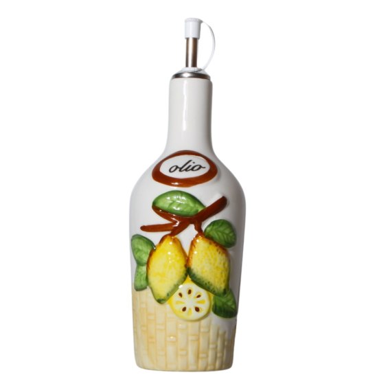 Dodaj śródziemnomorskiego uroku swojej kuchni dzięki wyjątkowej butelce na oliwę z dozownikiem. Wykonana z wysokiej jakości ceramiki, ozdobiona trójwymiarowymi cytrynami 3D, nie tylko pięknie się prezentuje, ale też zapewnia wygodne i higieniczne dozowanie oliwy, octu czy sosów.