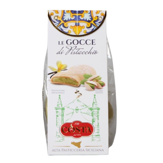 - Poznaj prawdziwy smak włoskiej słodyczy dzięki COSTA DOLCI - kruchym ciastkom z pysznym nadzieniem pistacjowo-waniliowym. To idealne połączenie maślanej, delikatnej konsystencji z wyjątkowym kremem o intensywnym aromacie pistacji i subtelnej wanilii. Doskonałe do kawy, herbaty lub jako mała, elegancka przekąska w ciągu dnia.
