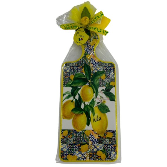 - Ceramiczna żółta deska do krojenia oraz naturalne mydełko cytrynowe 25 g, wyprodukowane we Włoszech. Praktyczna deska doskonale sprawdzi się w kuchni, a mydełko o świeżym, cytrusowym zapachu zapewni odświeżenie dłoni. Idealny pomysł na prezent, łączący funkcjonalność i śródziemnomorski styl!