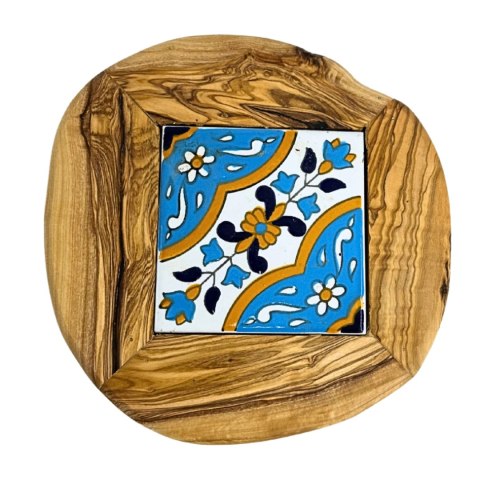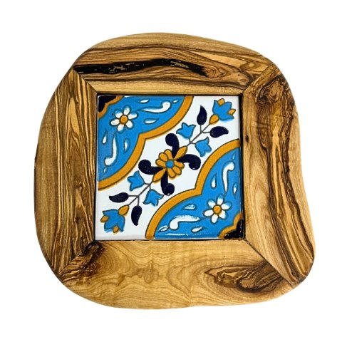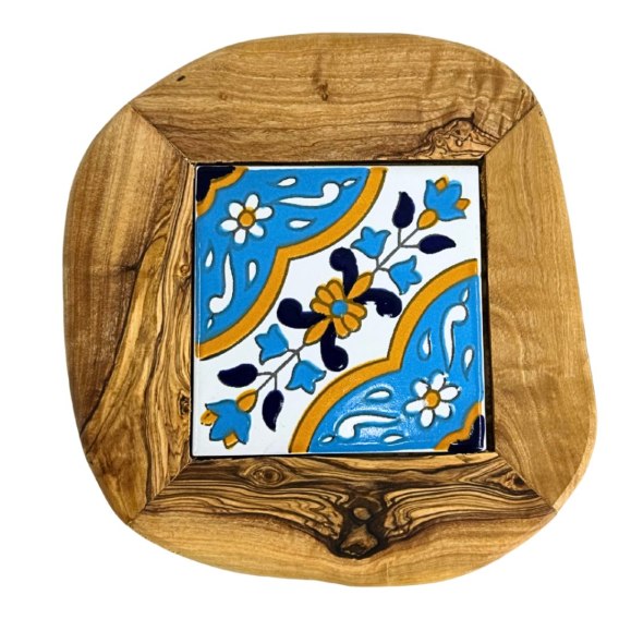 - Deska z drewna oliwnego z płytką ceramiczną, która ułatwia krojenie i serwowanie.