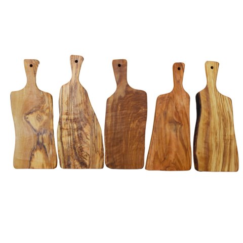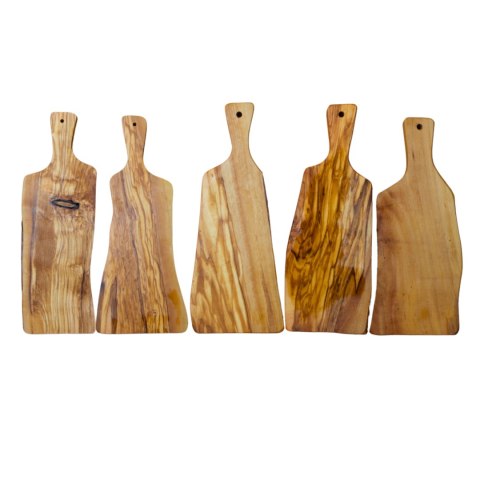 Każda deska z drewna oliwnego jest unikalna - jej wzór i odcień są naturalnie niepowtarzalne. Wymiary mogą się różnić o ±2 cm, co wynika z ręcznego wykonania i indywidualnych cech drewna.