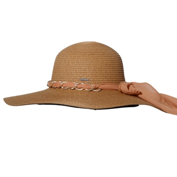 Kapelusz słomkowy damski - Brązowy z łańcuszkiem i kokardą | Letnia elegancja i skuteczna ochrona przed słońcem