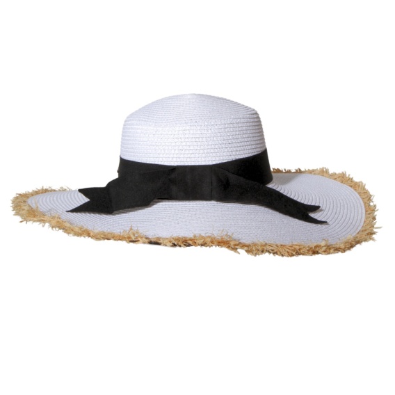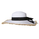 - Elegancki i praktyczny damski kapelusz słomkowy w białym kolorze, wyposażony w szerokie duże rondo oraz klasyczną czarną kokardę, to idealny dodatek na plażę, wakacje i letnie spacery. Wykonany z lekkiego, przewiewnego materiału, zapewnia komfort noszenia nawet podczas największych upałów. Szerokie rondo skutecznie chroni twarz i szyję przed szkodliwym działaniem promieni UV.