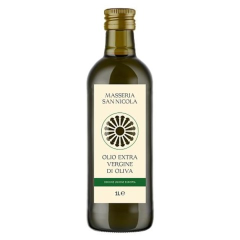 MASSERIA SAN NICOLA Extra Vergine to wysokiej jakości oliwa z oliwek tłoczona na zimno, pozyskiwana wyłącznie z pierwszego tłoczenia świeżych oliwek uprawianych we Włoszech. Jej naturalny, intensywny smak i lekko pikantna nuta doskonale podkreślają charakter włoskich potraw.
