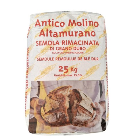 - Molino Piantoni Semolina Rimacinata to doskonałej jakości włoska mąka z drobno mielonej pszenicy durum (semoliny), idealna do wypieku autentycznych włoskich specjałów. Dzięki podwójnemu przemiałowi (rimacinata), mąka ta charakteryzuje się drobniejszą strukturą, wyjątkową chłonnością wody oraz wysoką zawartością białka i glutenu.