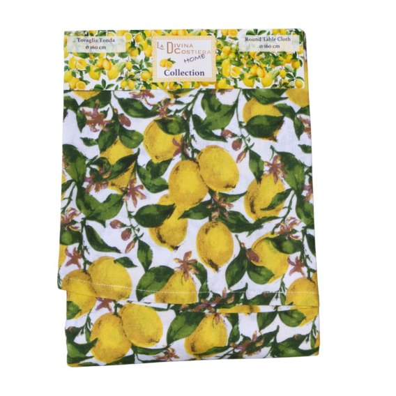 OBRUS OKRĄGŁY NA STÓŁ Dekoracyjny Biały 160cm Cytryny Włochy