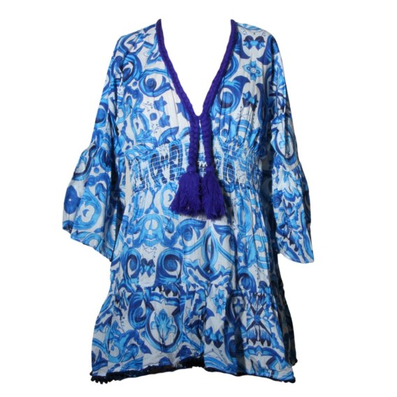 SUKIENKA LETNIA BOHO 100% Bawełna Biało-Niebieska Włochy