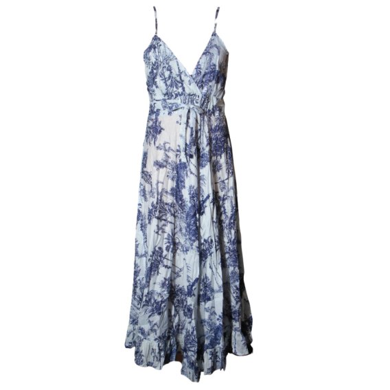 - Elegancka sukienka maxi na lato, wykonana w 100% z naturalnej bawełny, zapewniająca komfort i przewiewność nawet podczas najcieplejszych dni. Model z cienkimi ramiączkami, w klasycznym połączeniu białego i granatowego koloru, idealny na wakacyjne spacery, plażę czy casualowe wyjścia. Produkt z Włoch, gwarantujący wysoką jakość materiału i precyzyjne wykonanie.