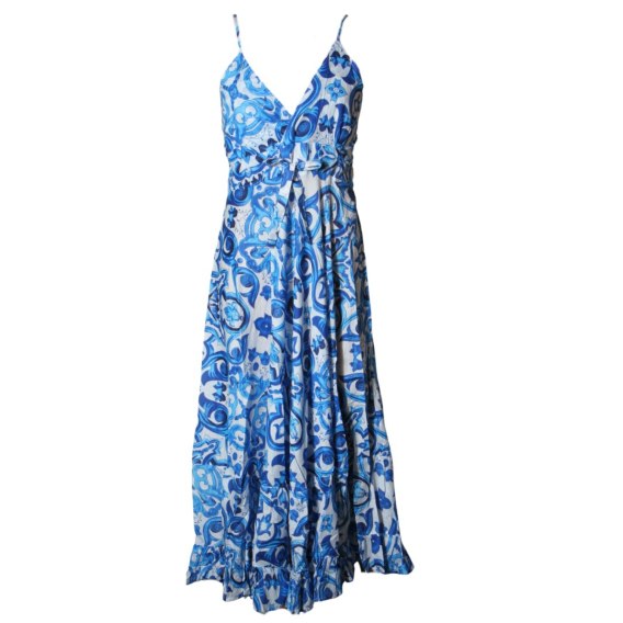 • Elegancka sukienka maxi na lato, wykonana w 100% z naturalnej bawełny, zapewniająca komfort i przewiewność nawet w upalne dni. Model z cienkimi ramiączkami, w klasycznym połączeniu bieli i niebieskiego koloru, idealny na wakacyjne spacery, plażę czy codzienne stylizacje. Produkt z Włoch, gwarantujący wysoką jakość materiału i staranne wykonanie.