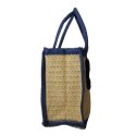 TORBA TOREBKA DAMSKA SŁOMKOWA Plażowa Beżowo-Granatowa 41x32cm Włochy