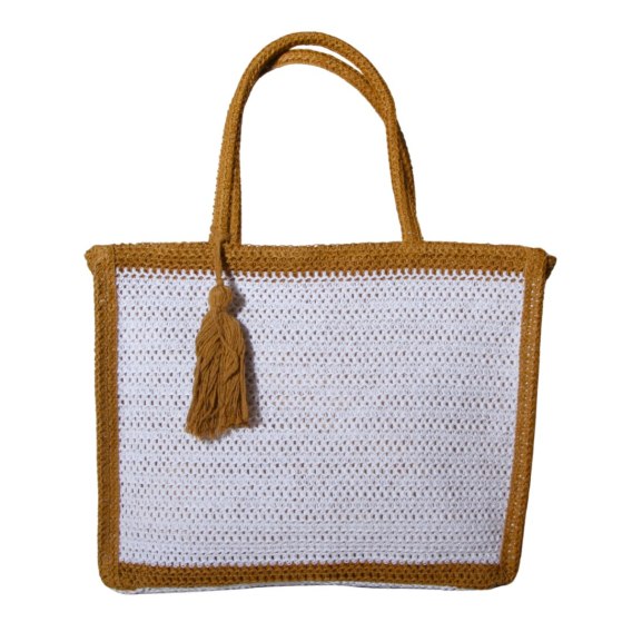 - Praktyczna i modna torba damska wykonana ze słomy, o wymiarach 41x32 cm, w eleganckim połączeniu białego i brązowego koloru. Doskonała na plażę, wakacje i codzienne letnie wyjścia. Włoski design i naturalne materiały zapewniają lekkość, trwałość oraz ponadczasowy styl. Pojemna i lekka - idealna na letnie dni.