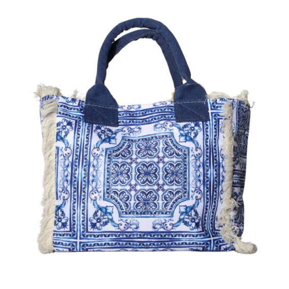 TOREBKA PLAŻOWA ZAKUPY BOHO Niebieska Włochy 27x24cm