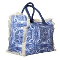 TOREBKA PLAŻOWA ZAKUPY BOHO Niebieska Włochy 54x34cm