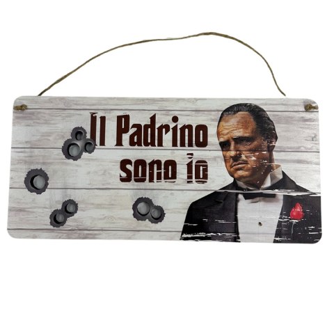 Stylowa zawieszka-tabliczka na drzwi Padrino o wymiarach 29x14 cm - idealny gadżet i pomysł na prezent dla fanów kultowego filmu Ojciec Chrzestny oraz włoskiego stylu. Wykonana z wysokiej jakości materiałów, tabliczka przyciąga wzrok klasycznym designem inspirowanym legendarnym motywem Padrino, dodając wnętrzu elegancji i charakteru. Świetna do dekoracji drzwi lub ściany, wprowadza do przestrzeni unikalny włoski klimat. Doskonały wybór na prezent dla miłośników kina, włoskiej kultury i oryginalnych akcesoriów dekoracyjnych.