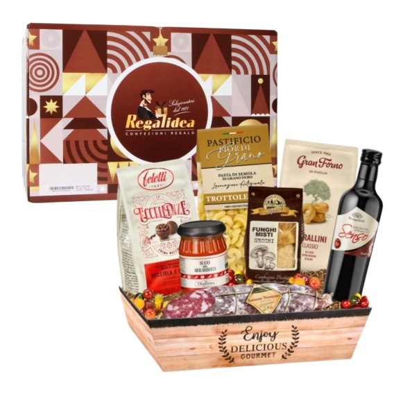 Zawiera zarówno wytrawne włoskie klasyki (salami, makaron, sos, ocet balsamiczny), jak i słodką nutę w postaci pralin czekoladowych. Całość tworzy gotowy, pięknie prezentujący się prezent, który zachwyci każdego miłośnika kuchni włoskiej.