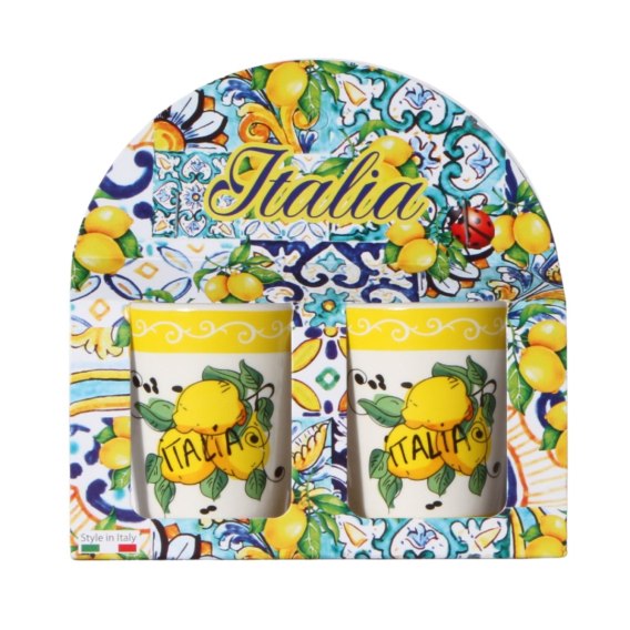 • Stylowy zestaw dwóch kieliszków o pojemności 50 ml wykonanych z wysokiej jakości ceramiki w biało-żółtej kolorystyce z motywem cytryny. Idealny do serwowania likierów, nalewek i innych alkoholi, wprowadzając do stołu świeży, włoski klimat. Trwałe, łatwe w czyszczeniu i wyjątkowo dekoracyjne - doskonałe zarówno do codziennego użytku, jak i jako elegancki prezent.